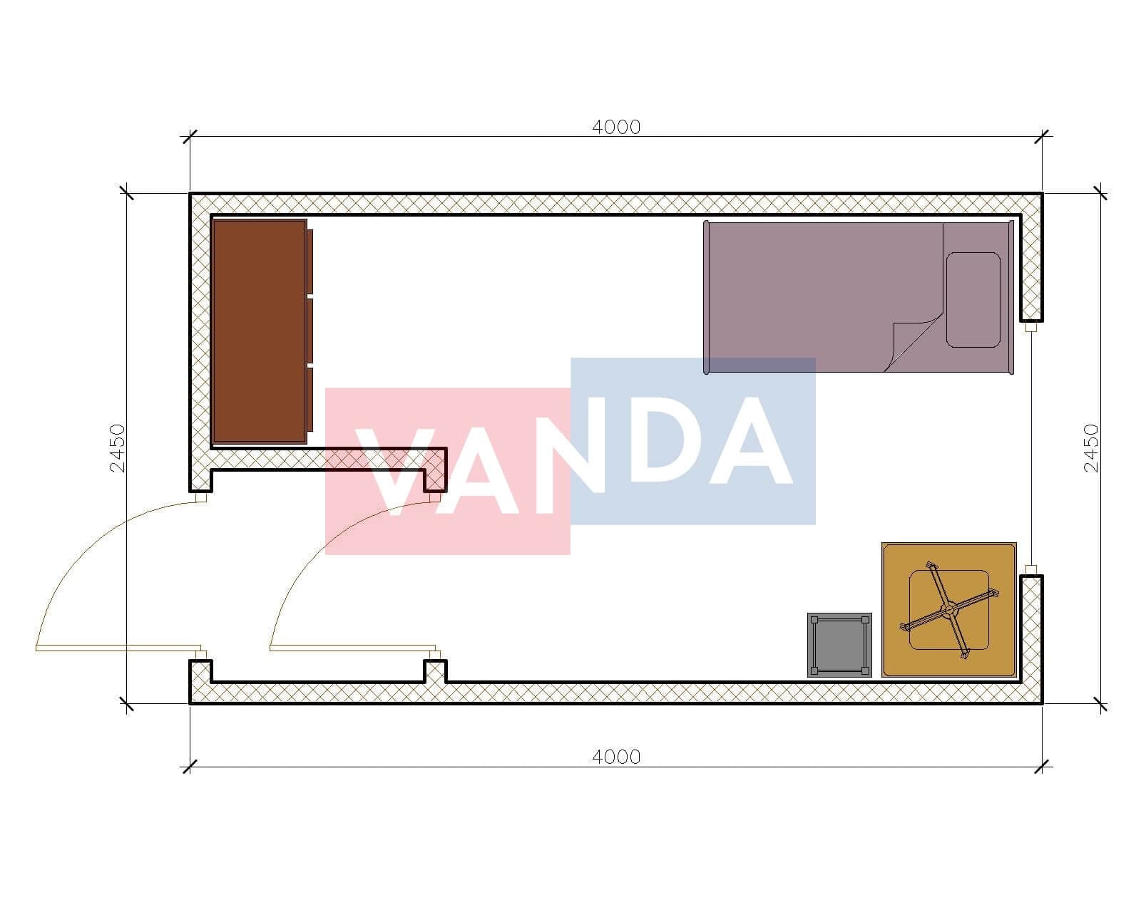 Проект модульной раздевалки 6.0х4,8 без тамбура